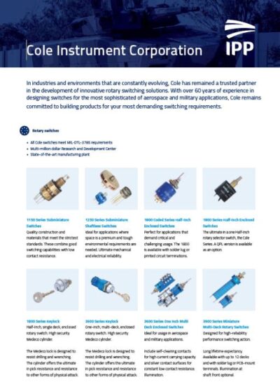 In industries and environments that are constantly evolving, Cole has remained a trusted partner in the development of innovative rotary switching solutions. With almost 60 years of experience in designing switches for the most sophisticated of aerospace and military applications, Cole remains committed to building products for your most demanding switching requirements.